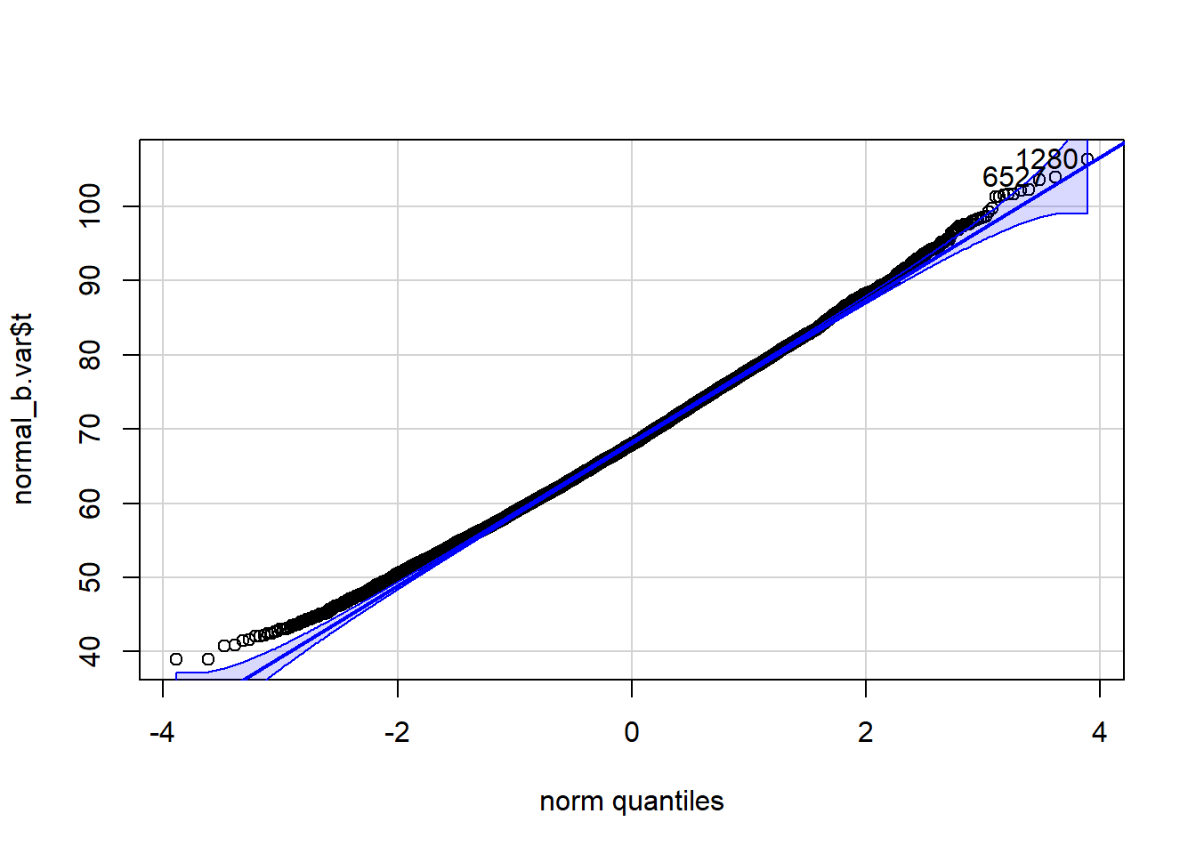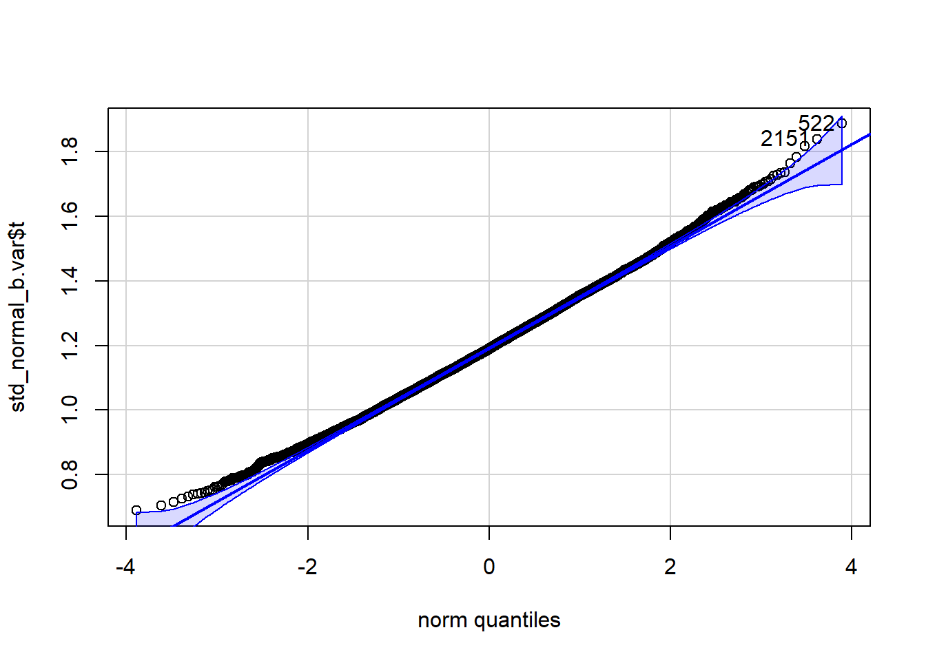 qqPlot(std_normal_b.var$t, distribution="norm")